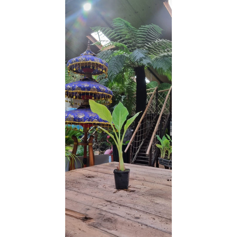 This unique banana plant combines the best of both worlds: an exotic look with practical winter hardiness. As a tub plant it is ideal for the Dutch climate, where you can choose to bring it inside in the winter or leave it outside with the right protection. Its compact size makes it suitable for any garden or patio, while its spectacular flowering and butterfly-attracting properties provide extra garden pleasure.