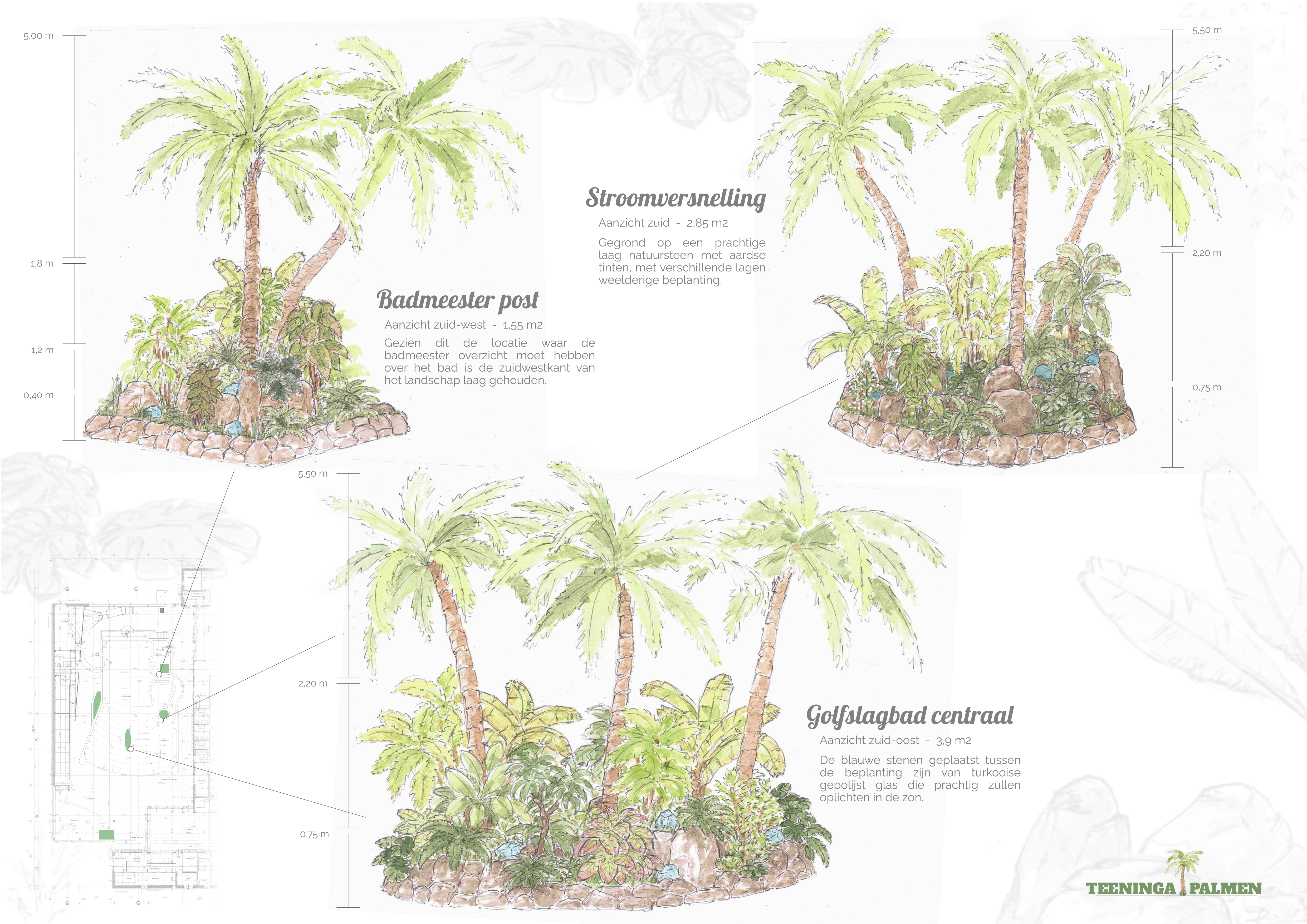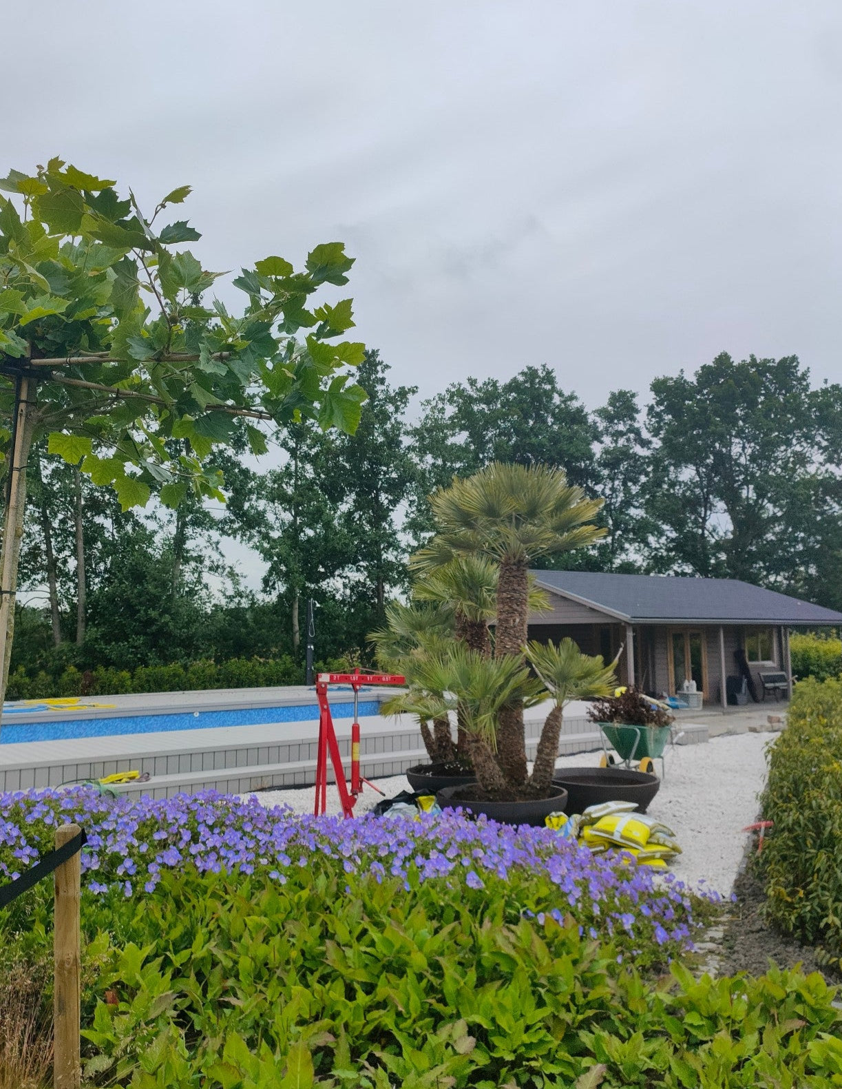 Wir können die schönsten Schwimmbaddekorationen sowohl für die Niederlande als auch für das Ausland erstellen. Von 5 Meter hohen Trachycarpus bis zu 13 Meter hohen Washingtonias. Aber auch kleinere Palmen und Dschungelpflanzen kommen in Frage.